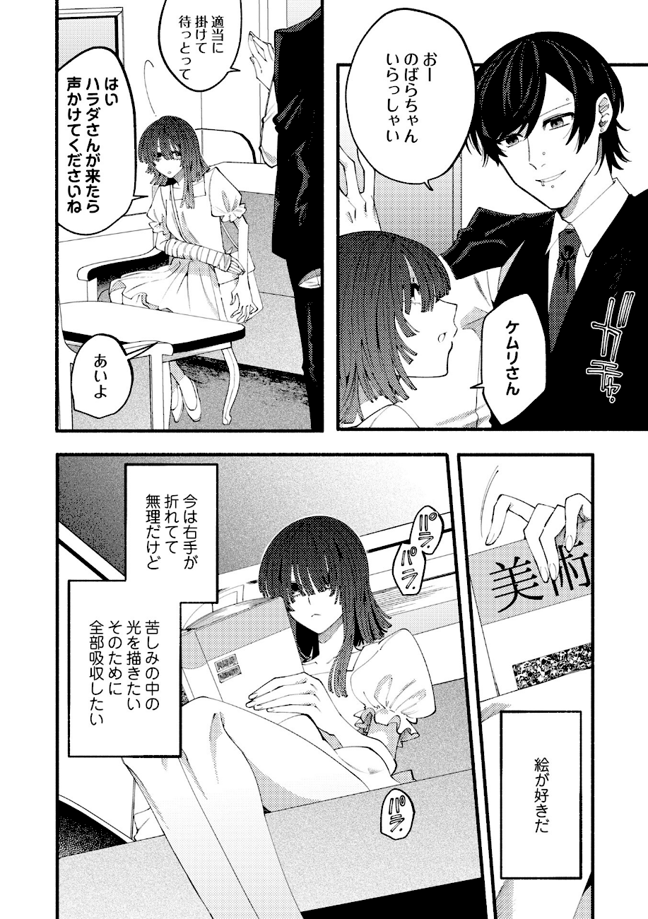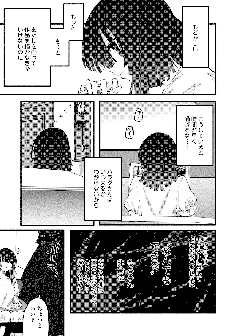 「殴りたい、食べたい、切り裂きたい」──そんな貴方の欲望を叶える特殊な風俗店。リョナ風俗キャストのヒロインは元は芸術家一家に生まれたお嬢様。「芸術は苦しみの汚泥に咲いた蓮」という主義を持つ。恵まれた環境にいる自分はその域に到達できないと燻っていたところ、大学を辞め風俗店に入店し…!?