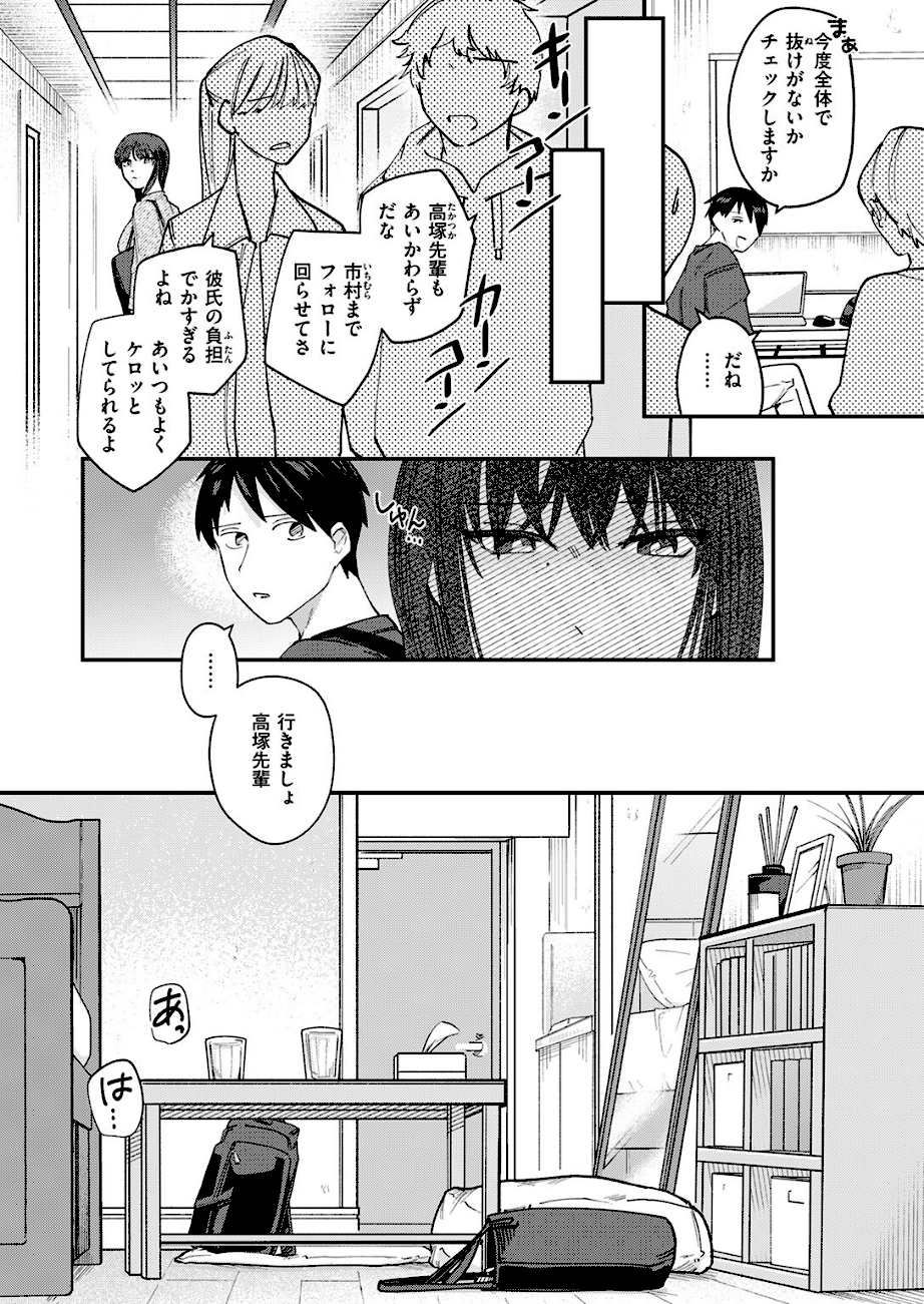 いつもとげとげしい態度で周りから疎まれている、写真研究会の高塚(たかつか)先輩。でも彼氏の前では、目隠しに言葉責めに、果てはハメ撮りまでされても悦んでしまうド変態だった!!騎乗位で下から突かれてもう限界! そんな彼女に、彼氏が見せた《あるモノ》とは……。