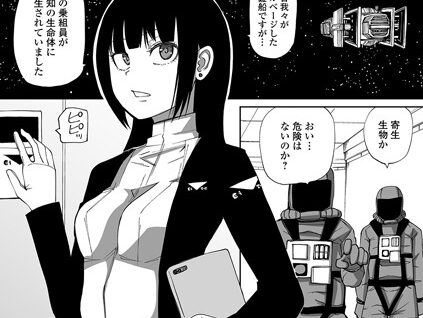 宇宙空間に漂う遭難船内で発見された未知の寄生生命体。研究を担う女性クルーが隙を見せた時に、死んでいたものと思われていた寄生体が突如ケースを割り破って頭部に貼り付いてしまう。狼狽する女性クルーの耳穴から脳内へと触手を伸ばして侵入する寄生体。強●的な異常快感を得て挙動がおかしくなった女性クルーは銃口を向ける男性クルーに命乞いをするのだが……。阪本KAFKAが描くSFリョナホラー!!※ この作品はアンソ…